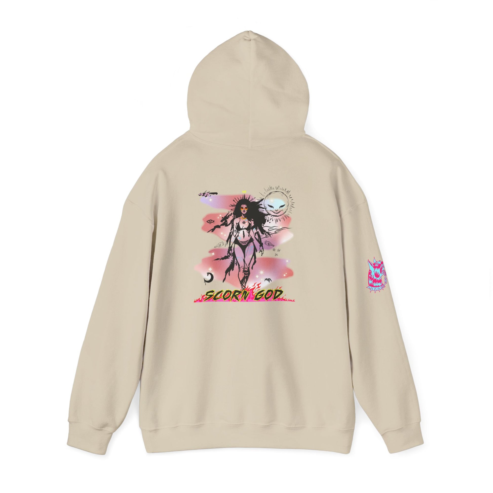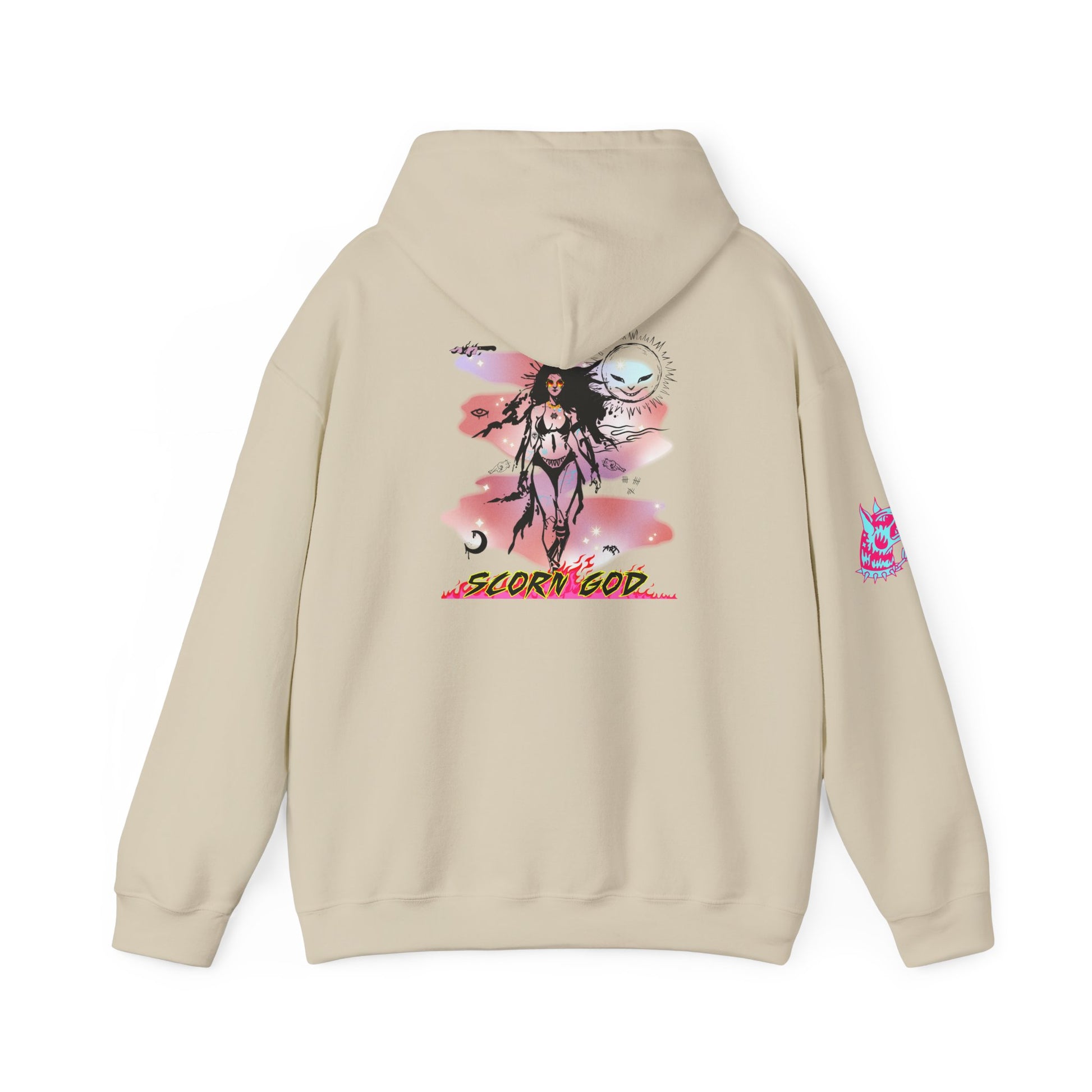Embrace a bold and edgy aesthetic with our unisex heavy blend hoodie the Scorn God. Perfect for those crisp days, it combines comfort with an eye-catching design that makes a statement. Ideal for anyone who loves unique, artistic apparel, this hoodie is perfect to wear during casual outings or cozy indoor lounging. The vibrant graphics create an energetic vibe that's great for festivals, parties, or everyday wear. This sweatshirt is a fantastic gift for friends or family during holidays or celebrations like birthdays and Halloween, adding a touch of personality to their wardrobe.