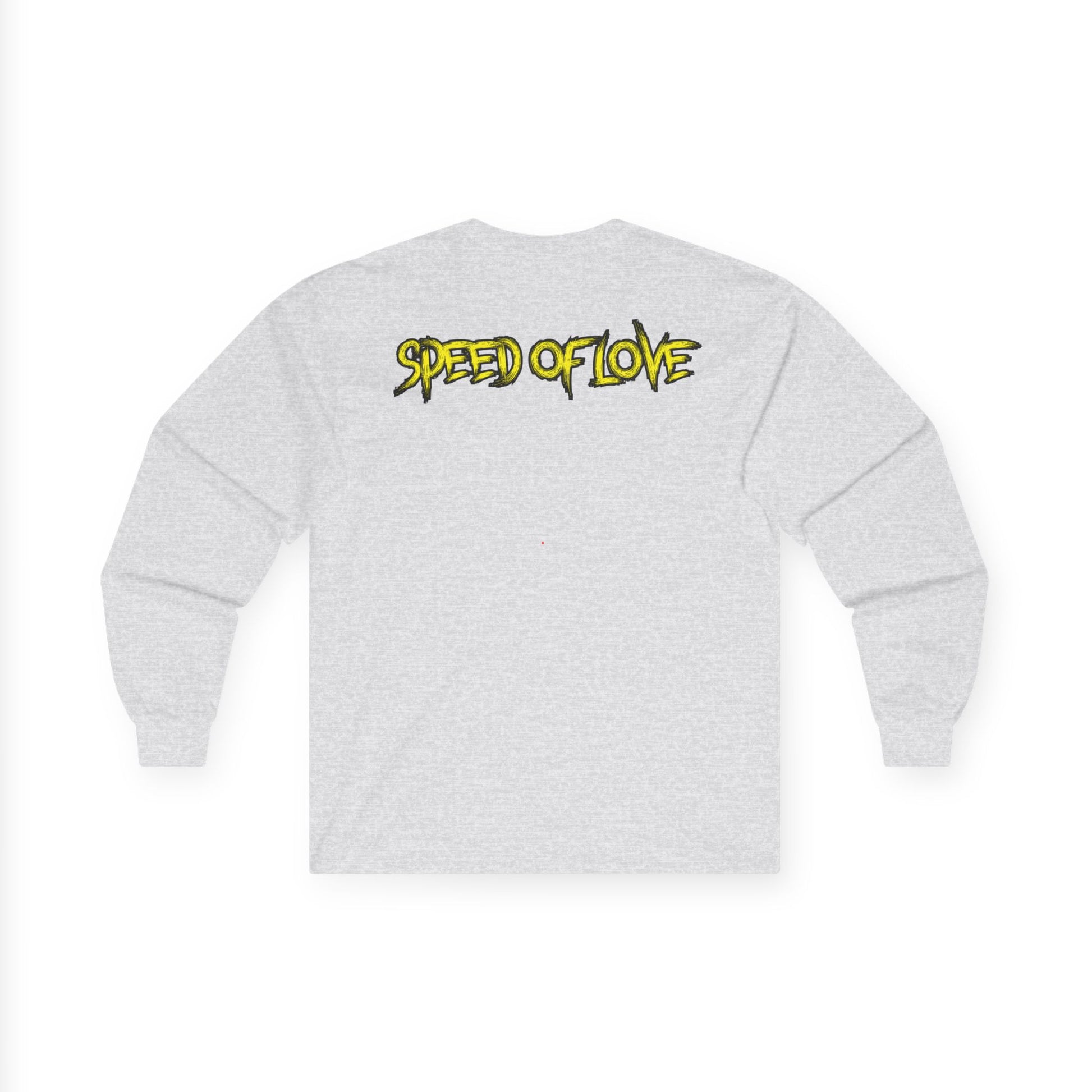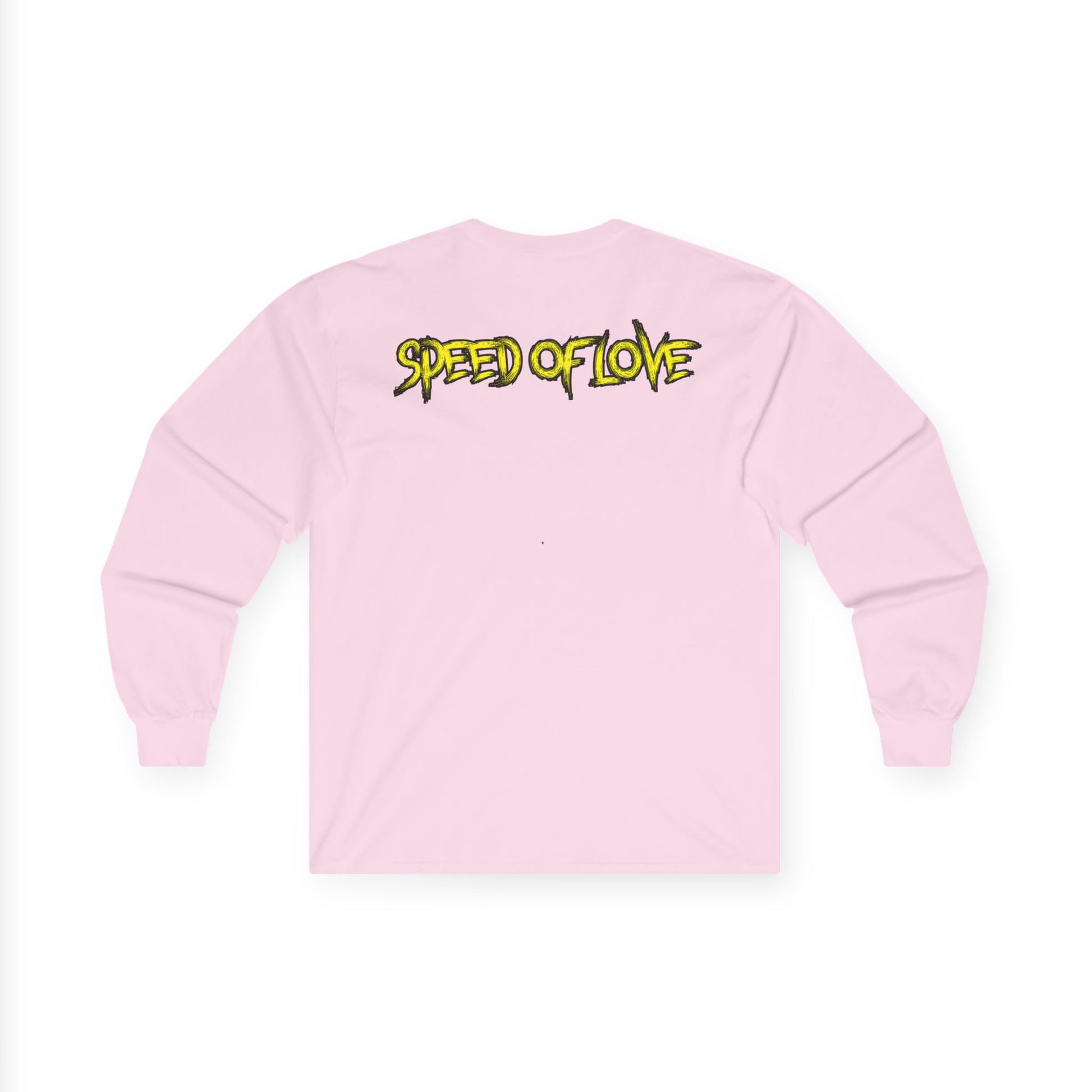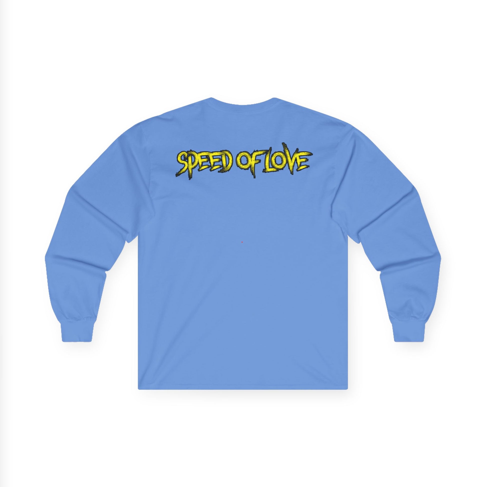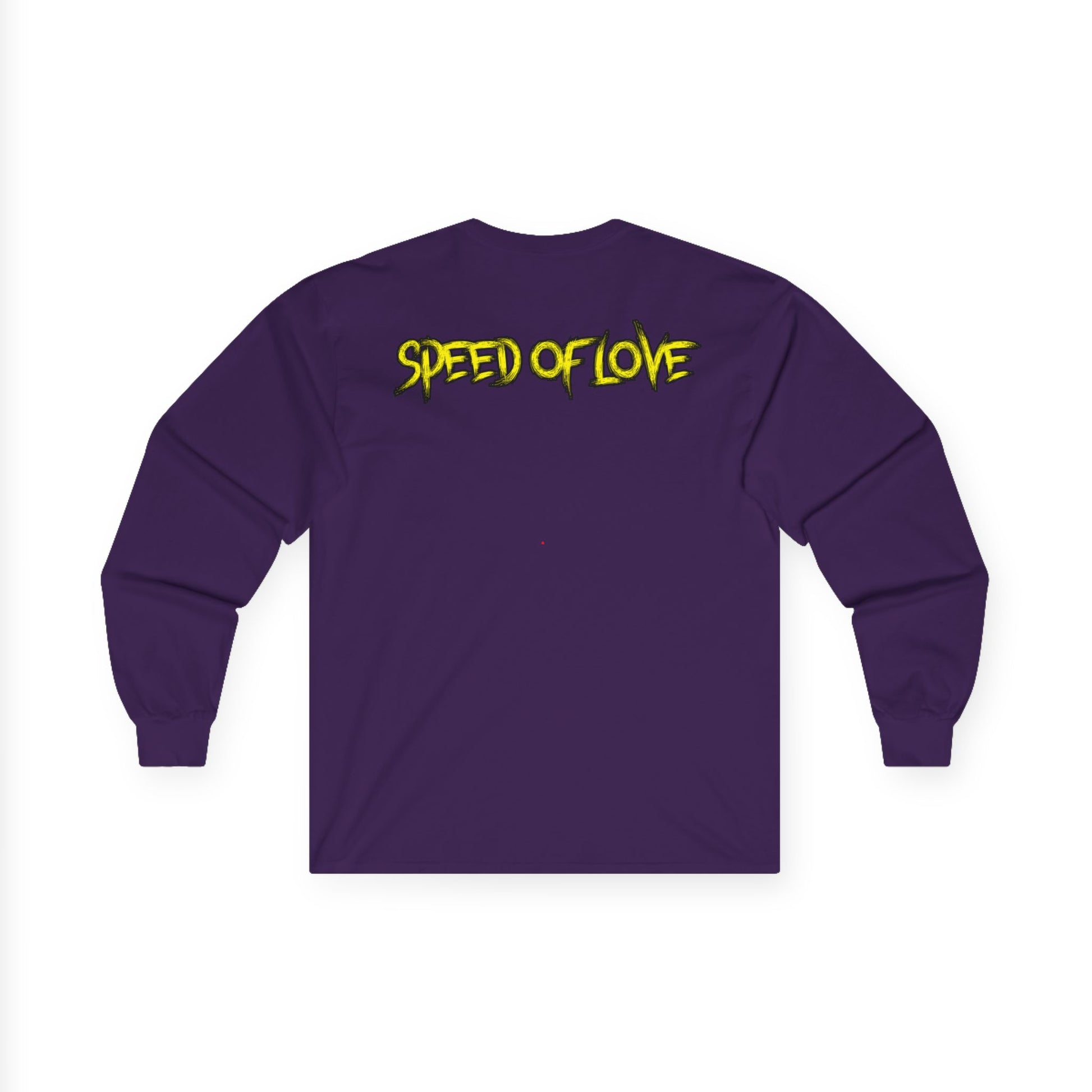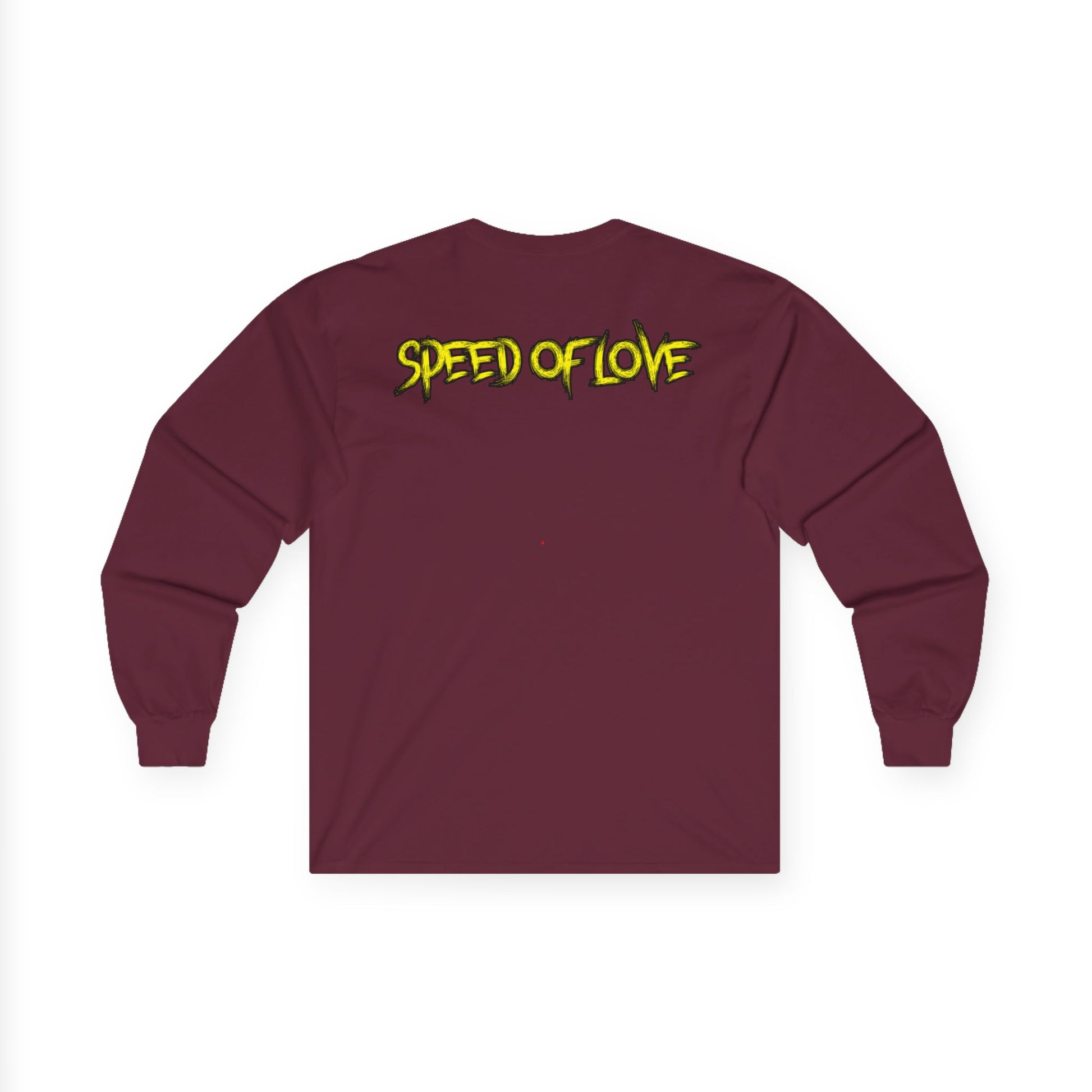 The Long Sleeve Tee Speed Of Love is a cozy and stylish addition to your wardrobe, perfect for those who love a vintage feel. It is great for casual wear or lounging at home, offering a comfortable and relaxed vibe. This tee is ideal for adults looking for a unique and eco-friendly piece to wear during the colder months, and it's perfect for Valentine's Day and anniversaries.