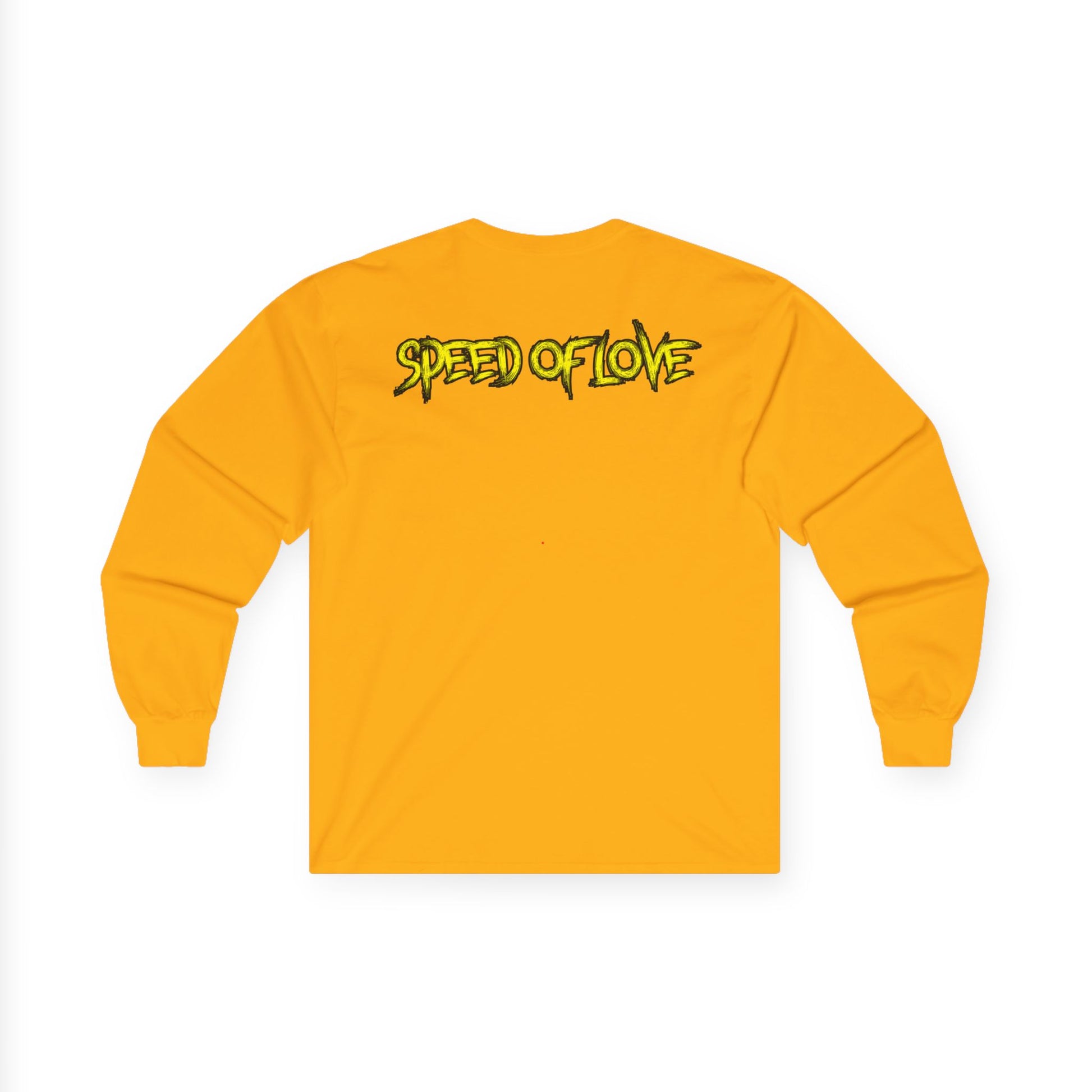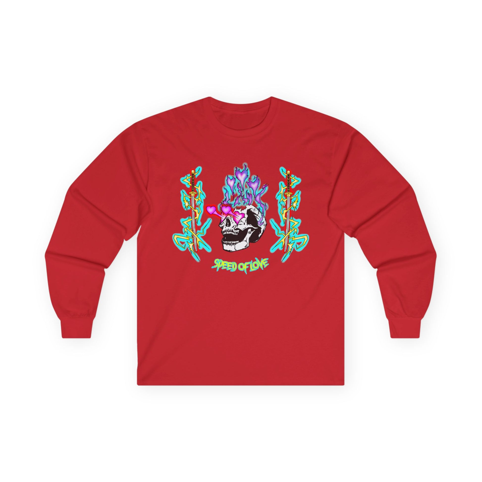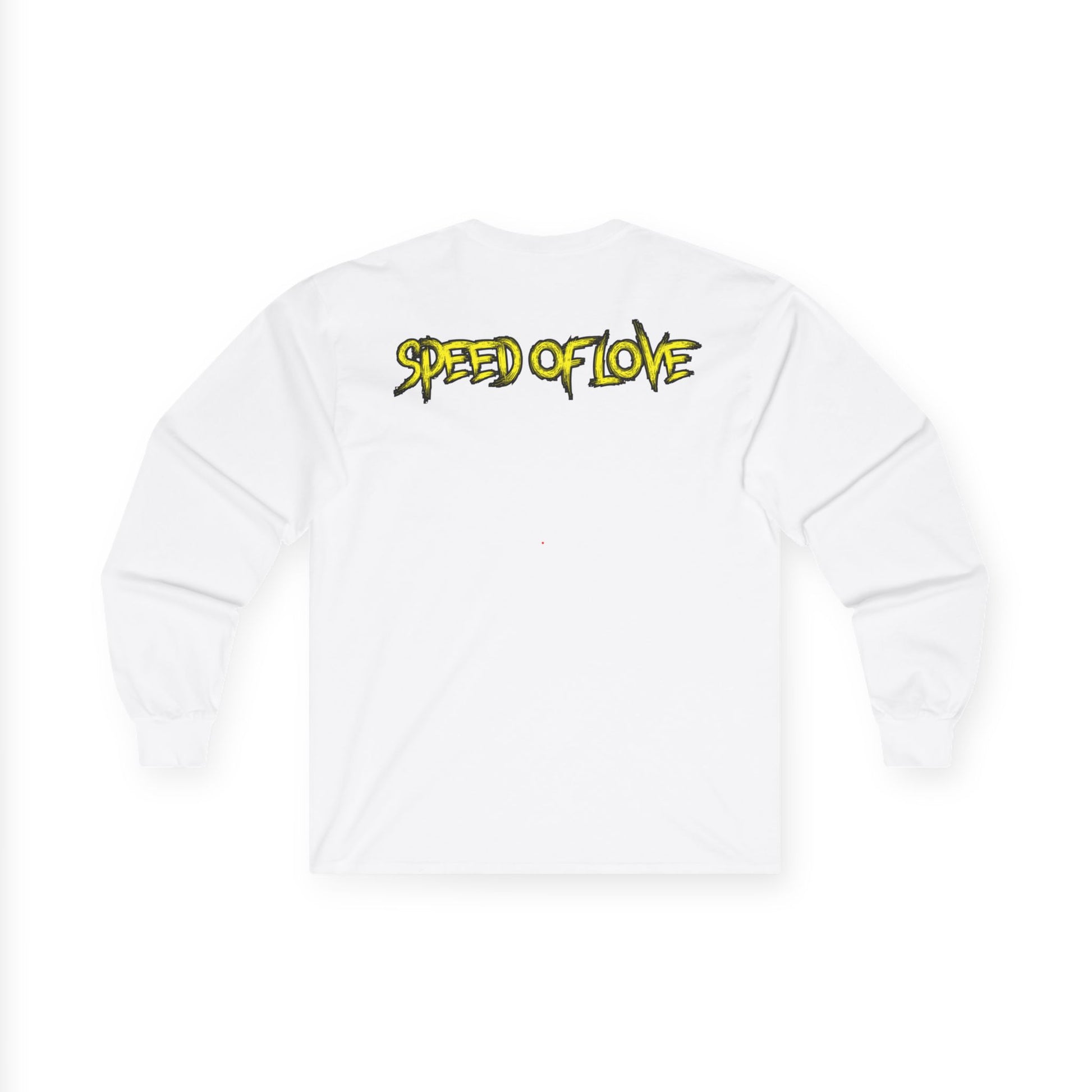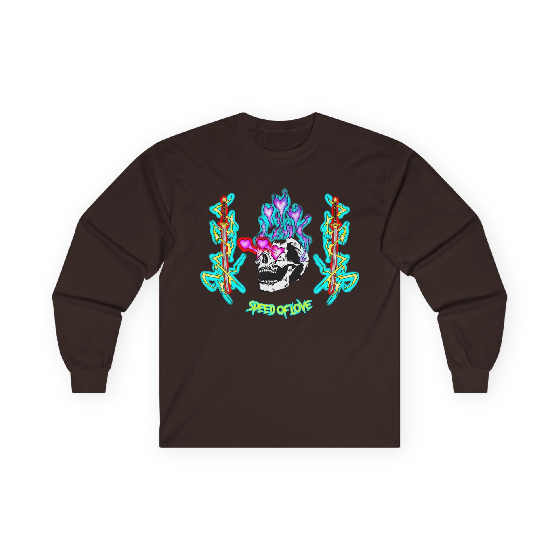 The Long Sleeve Tee Speed Of Love is a cozy and stylish addition to your wardrobe, perfect for those who love a vintage feel. It is great for casual wear or lounging at home, offering a comfortable and relaxed vibe. This tee is ideal for adults looking for a unique and eco-friendly piece to wear during the colder months, and it's perfect for Valentine's Day and anniversaries.